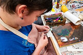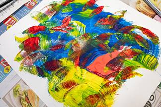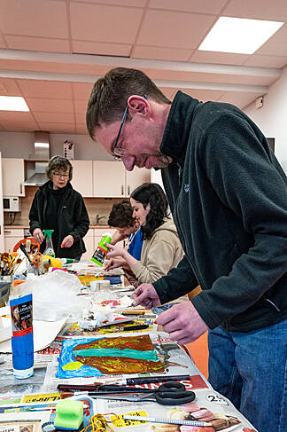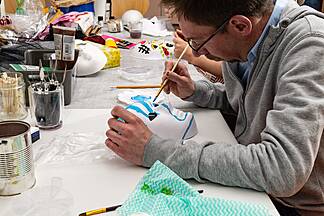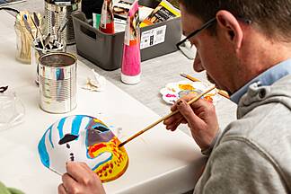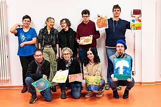 Unter der künstlerischen Leitung von Sheela Jaensch und der Unterstützung von Anastasia Gerling und Claudia Knoll trifft sich das Künstler*Innen-Kollektiv "Kunst-Raum" alle 14 Tage sonntags im Atelier im Schwarzen Weg 8. Mal wird mit Acryl oder Aquarell gemalt, mal wird mit Ton-Artigen Material gestaltet. Die Wünsche der Künstler*Innen stehen immer im Vordergrund und neue Materialien werden schnell besorgt. Manchmal schaut sich die Gruppe Kunst anderer Künstler*Innen an.