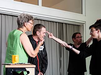 Unter der Regie von Birgit Klinksiek und Maja Pape und mit der Unterstützung von Tanja Landree und Susanne Flaake trifft sich die "Gurken-Truppe - fein gewürzt" jede Woche Donnerstag in den Räumen der Lebenshilfe Minden. Aktuell arbeitet die Gruppe an ihrem neuen Stück, dass im Frühjahr 2026 Aufführung haben soll. Manchmal machen sie aber auch Ausflüge und schauen sich Stücke anderer Gruppen an.